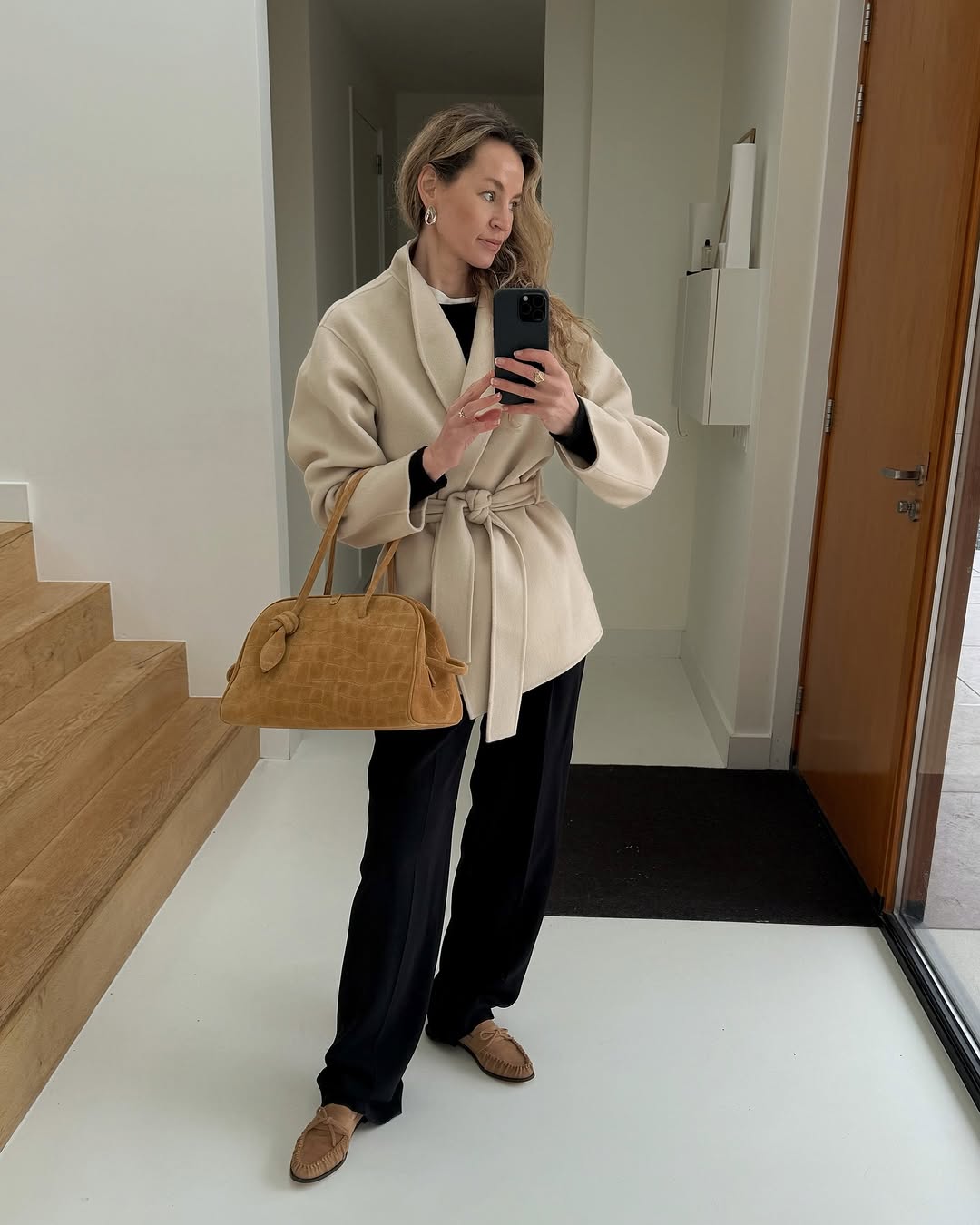 For those who love a structured yet relaxed look, cinching a jacket at the waist is an instant game-changer. Anouk often styles belted blazers or cinched coats with slim trousers to create a flattering, elongated silhouette. The belted detail enhances the waist, ensuring a sleek, tailored finish. Whether it’s a trench coat or a wool blazer, this styling trick transforms any outerwear into a statement piece.