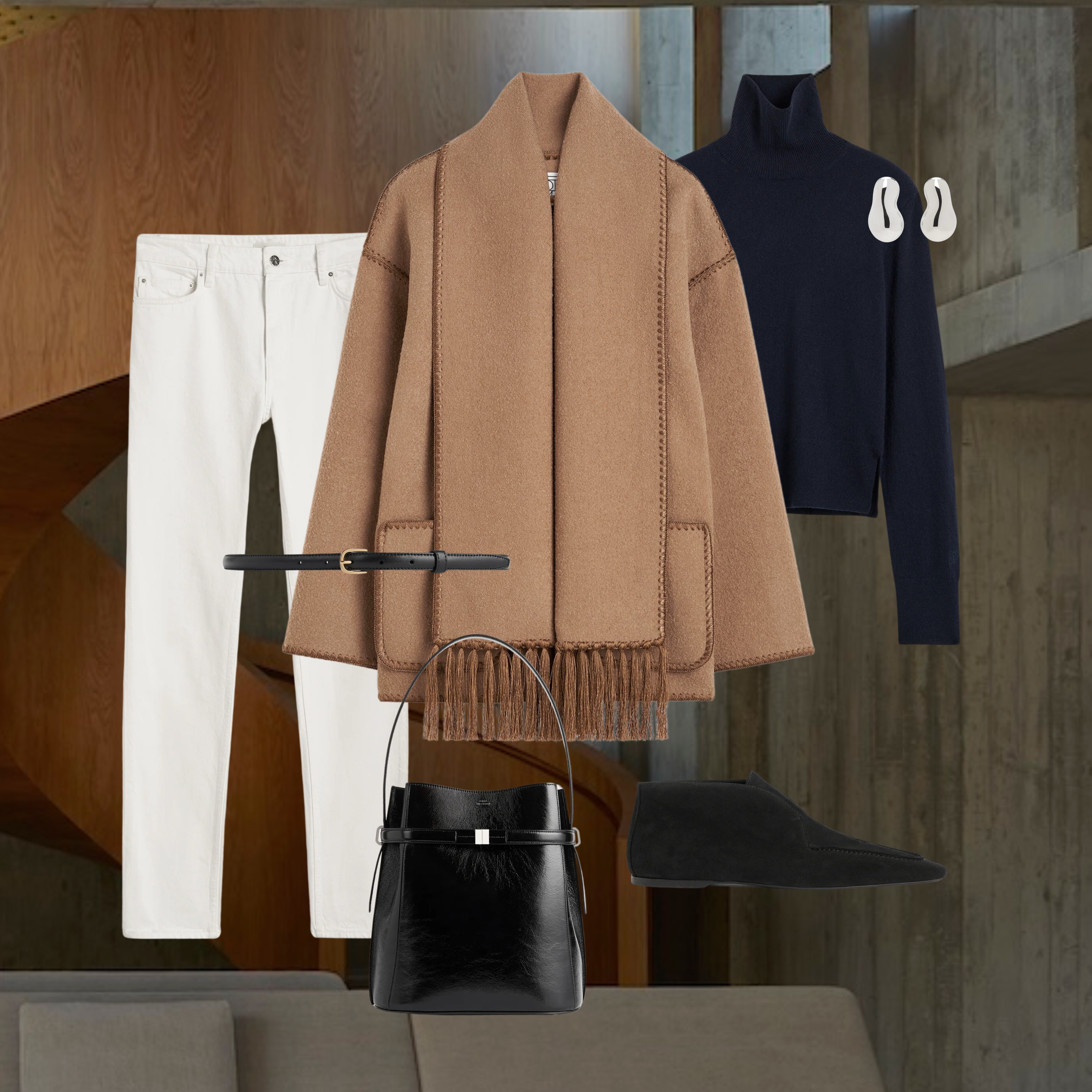 - "Minimal winter capsule in warm browns, three pieces under $300 each."