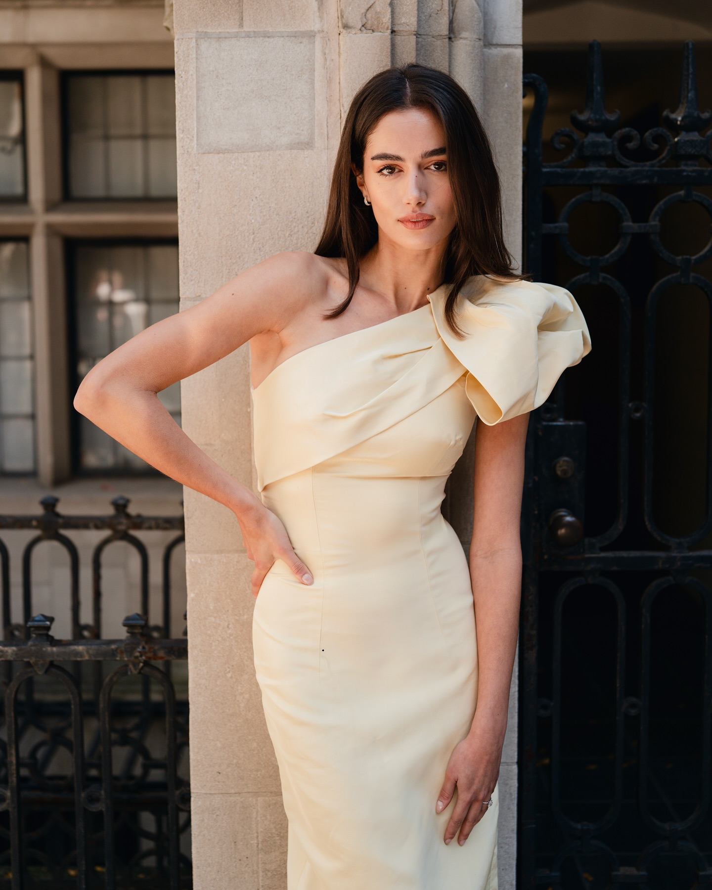 Pastel shades are perfect for spring, and statement sleeves add an on-trend, dramatic touch. This style is both photogenic and romantic for rooftop atmospheres.