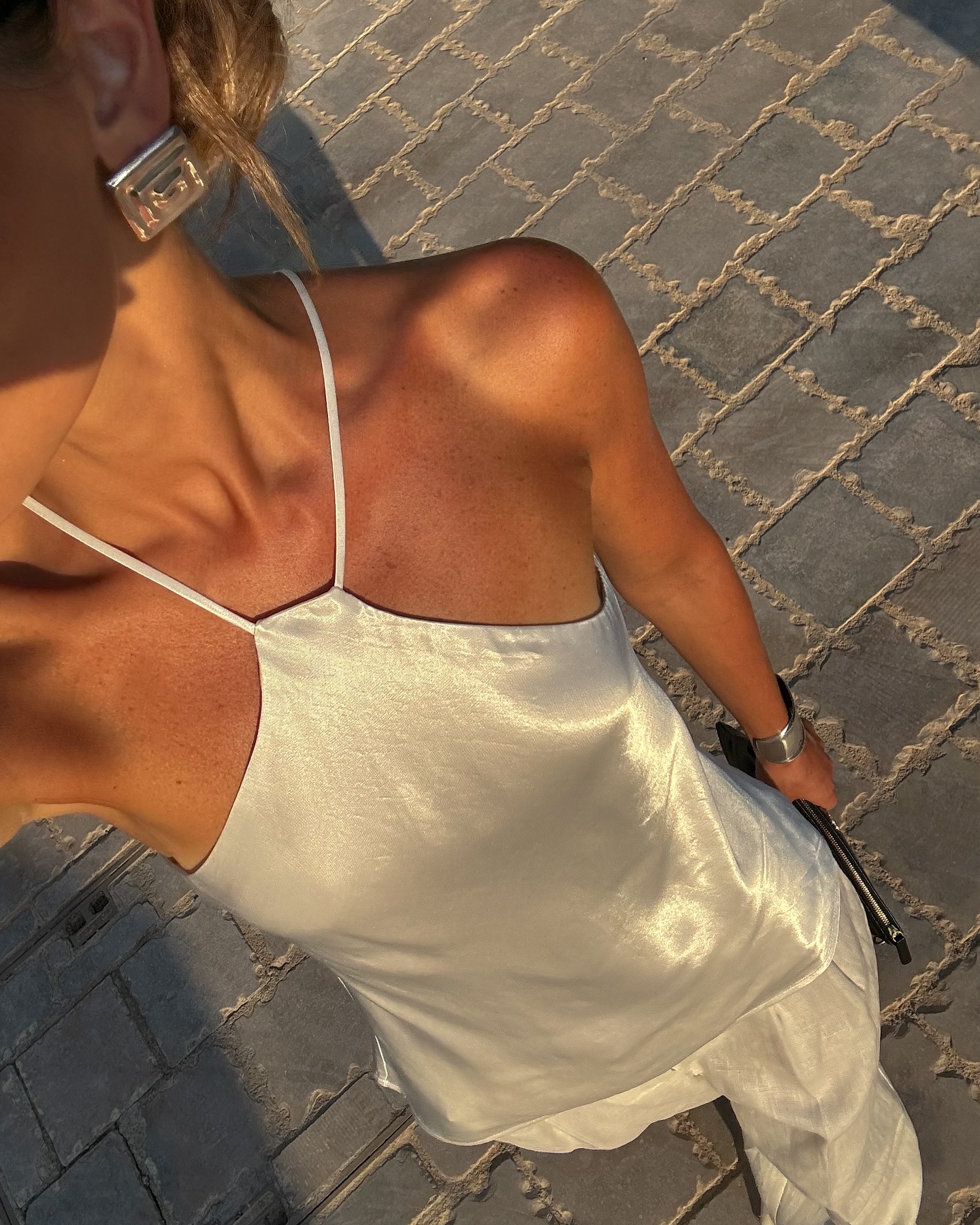 Elma Lurex Knit Halter Maxi Dress - Silver