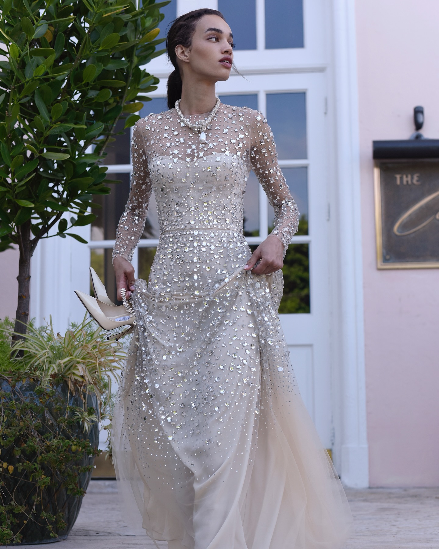 Acadia Diamante Long Sleeve Maxi Dress - Black