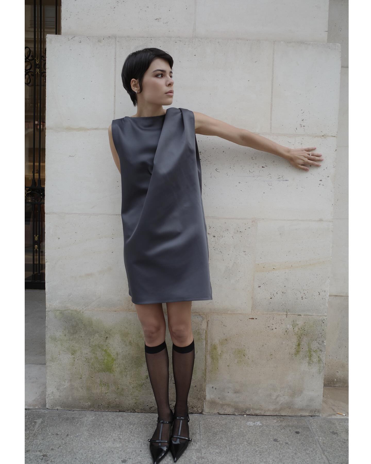 Caped Back Dress in Silk Charmeuse