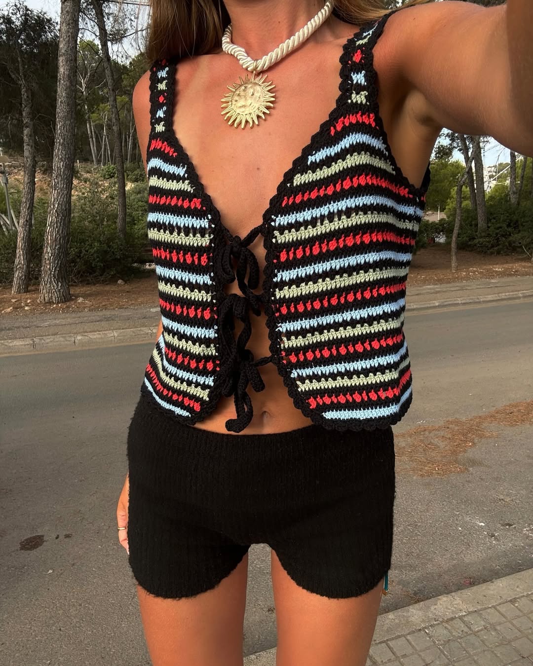 Red Lurex Stripe Hand Beaded Sydney Blouse