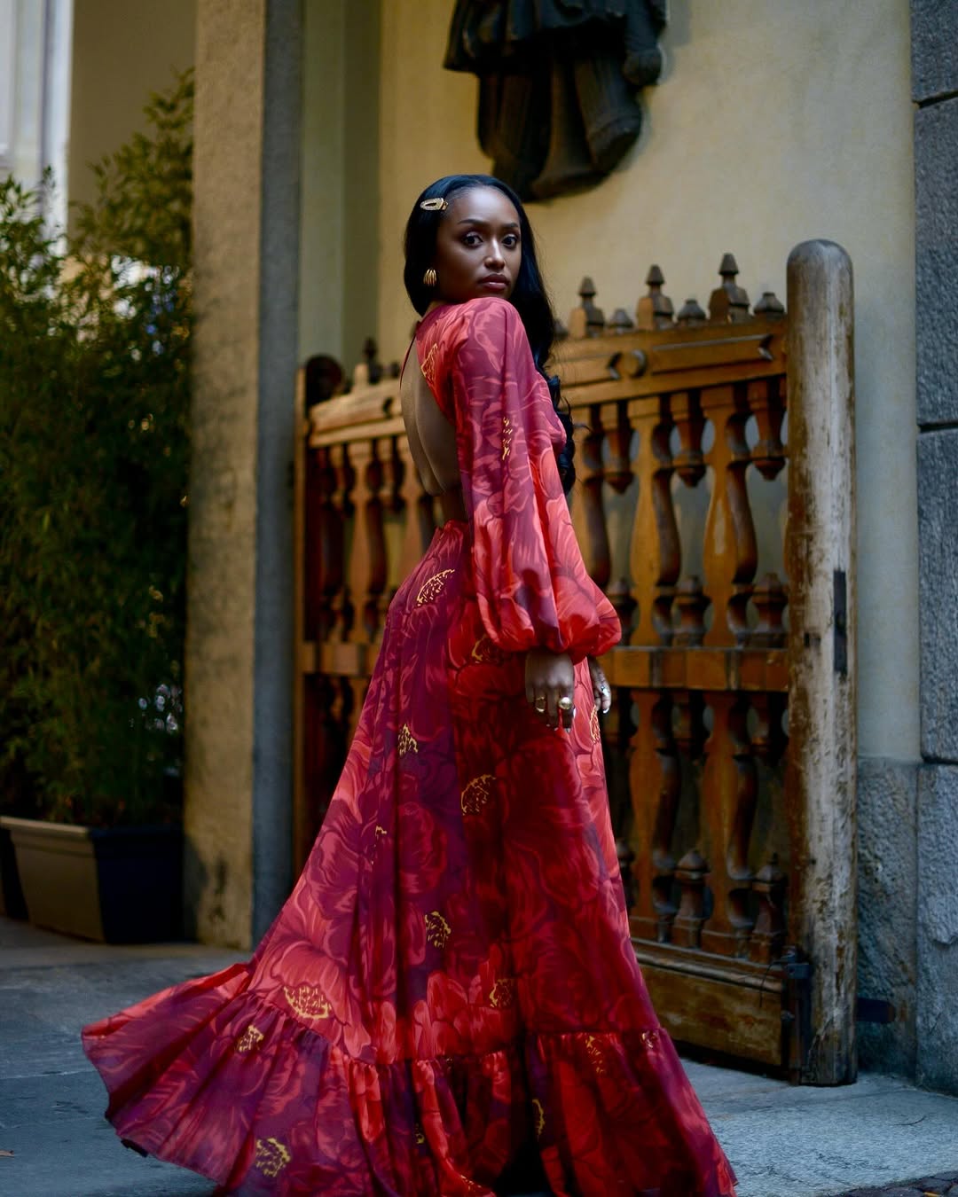 Open-back floral lace gown