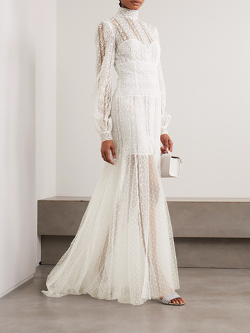 Edie appliquéd silk chiffon-trimmed cotton-blend corded lace gown