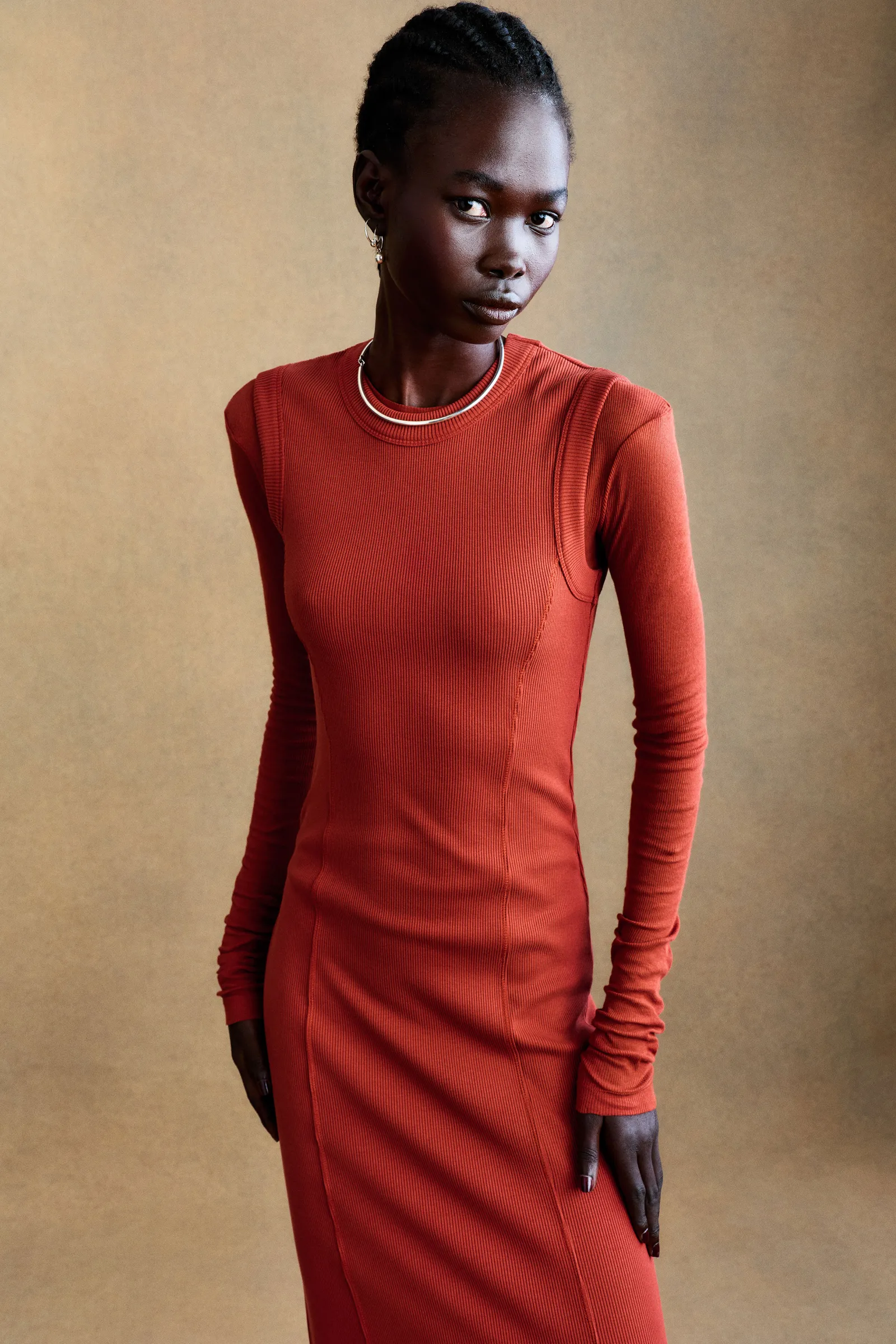 Ribbed-knit midi dress