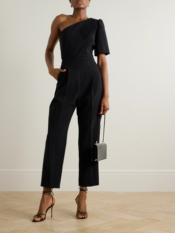 Zephyra one-shoulder cape-effect crepe jumpsuit