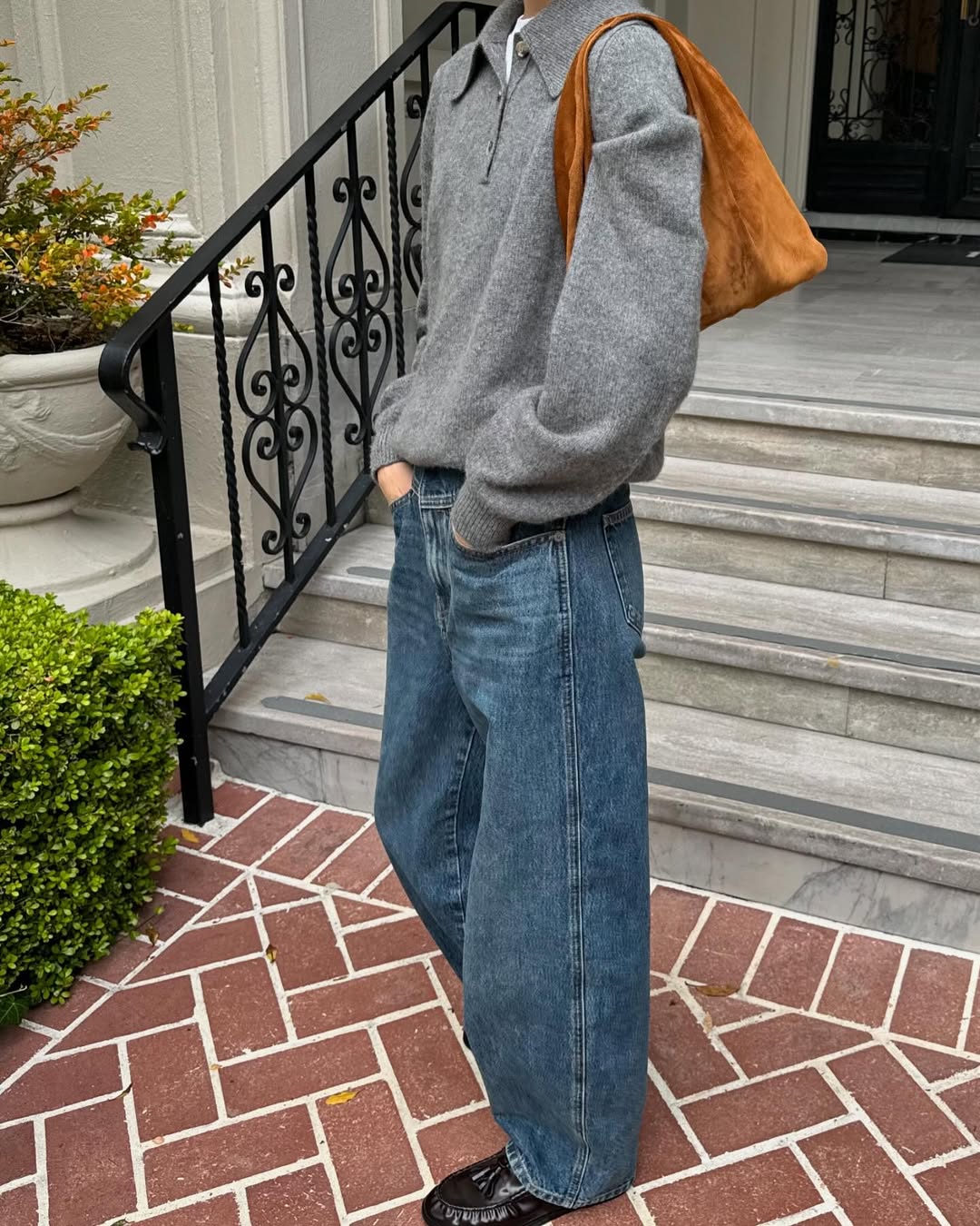 Chambray wide-leg jeans