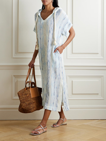 Beritu hooded striped cotton-blend coverup