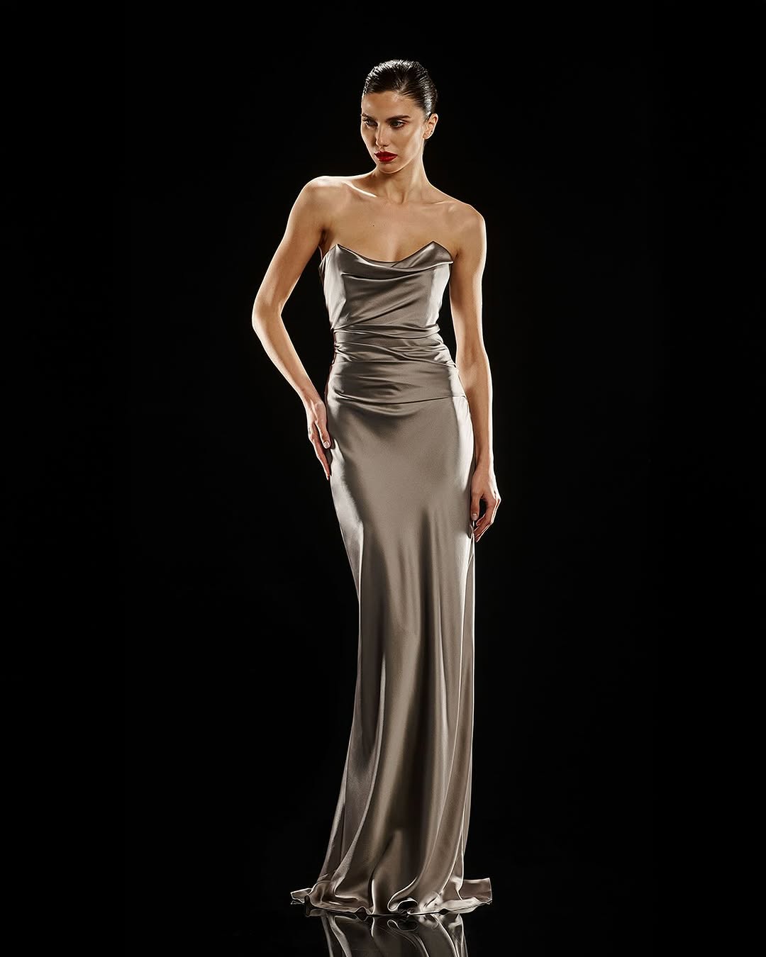 Draped silk satin gown